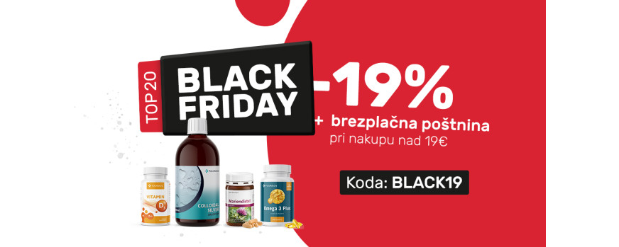 Črni petek tudi v FutuNaturi! Izkoristite dodatnih 19% popusta na 20 najbolj priljubljenih izdelkov ta hip. Za nakupe v vrednosti nad 19 € vam podarjamo tudi brezplačno poštnino.