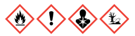 Môže byť horľavá kvapalina a výpary. Pri požití a vniknutí do dýchacích ciest môže byť smrteľné. Škodlivé pre zdravie pri požití alebo vdýchnutí. Spôsobuje podráždenie kože. Jedovaté pre vodné organizmy, s dlhodobými účinkami. Uchovávajte oddelene od tepla, horúcich povrchov, iskier, otvoreného ohňa a iných zdrojov vznietenia. Zákaz fajčenia. Nevdychujte hmlu/výpary/rozprašované častice. PRI POŽITÍ: Okamžite kontaktujte TOXIKOLOGICKÉ CENTRUM alebo lekára. NEVYVOLÁVAJTE zvracanie. V prípade požiaru: Na hasenie použite vodnú hmlu, oxid uhličitý, hasiaci prášok alebo hasiacu penu. Obsah/obal odovzdajte oprávnenému zberateľovi nebezpečného odpadu.